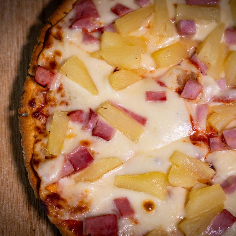 Med. $19.00 | Lg. $22.00 | XL. $25.00 • Canadian Bacon, Pineapples